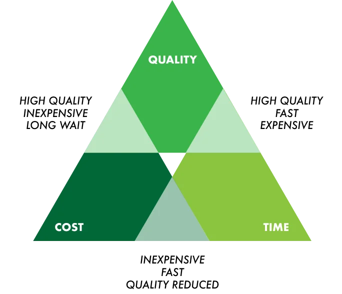 Take a construction project, for instance. You want it lightning-fast, top-notch quality, and on a budget that won’t make your eyes water. Sounds dreamy, right? Unfortunately, reality hits hard. Speeding things up might pump up the cost or compromise on quality. Opting for high quality could stretch the timeline and the budget, while aiming for a tight budget might mean compromising on either speed or quality.